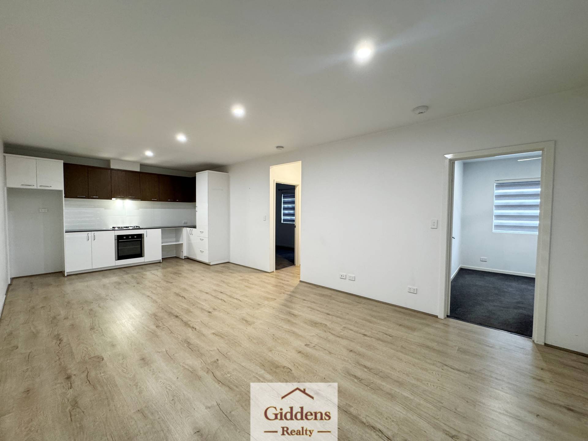 Featuring two generous bedrooms and a sleek bathroom, the open-plan kitchen, dining, and living area creates a spacious and inviting atmosphere.